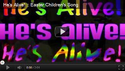 "He's Alive!" - the great new of the Resurrection. Getting ready for Easter? Here's an easy song that's great fun to sing, and with the great Bible truth of 1 Peter 1v3 ringing out loud and clear: "Praise be to the God and Father of our Lord Jesus Christ! In his great mercy he's given us new birth to a living hope through the resurrection of Jesus Christ from the dead!"